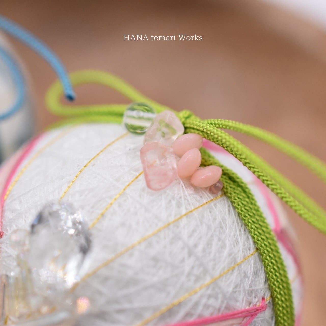 ・天然素材(天然石、貝、サンゴなど)の変質と、手まりの変形を防ぐため、水濡れにご注意ください。