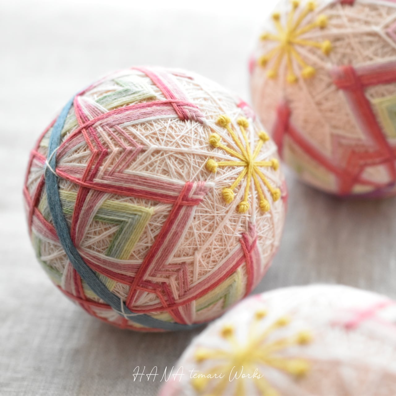 ・天然素材(天然石、貝、サンゴなど)の変質と、手まりの変形を防ぐため、水濡れにご注意ください。